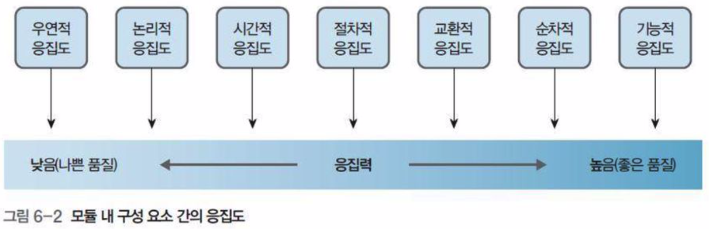 - 테스트 용이성(testability) : 사용자가 요구하는 기능을 만족스럽게 잘 수행하고 있는지, 얼마나 쉽고 철저하게 테스트할 수 있는지 나타냄