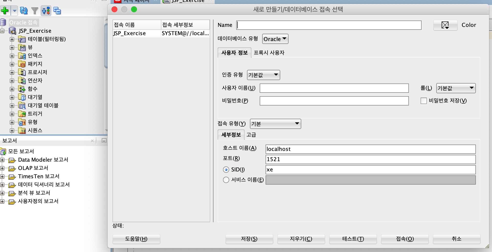 기존에 실행하고 있던 SQLDeveloper를 종료한 후 다시 실행해서 다시 다 채워넣으면 된다.
