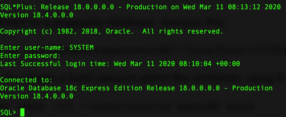 -v 파라메터는 18.4.0 버전 이미지를 만든다는 의미이고, -x 옵션은 XE 인스턴스를 사용한 이미지를 생성한다는 것.